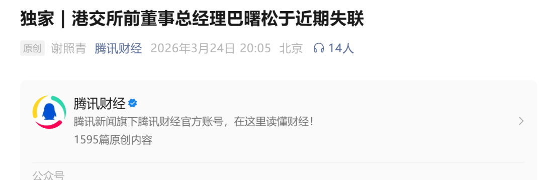 3月24日,多个知情人士称,港交所前董事总经理、首席中国经济学家巴曙松已于近期失联。部分信源称,巴曙松已被有关部门带走调查,但暂未能获悉其涉案件详情。